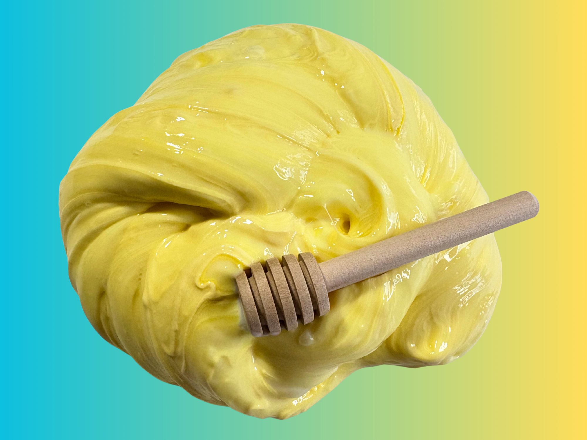 A honey and oatmeal scented, DIY clay slime. The base is 4oz or 6oz of thick white slime. There is 1oz of honey, clear based glaze. There are 2 clay honey comb pieces. The kit comes with honey sprinkles and honey wand. Makes a great gift for kids and adults. Option to have slime individually wrapped for party favors is available. Just make a note in checkout.